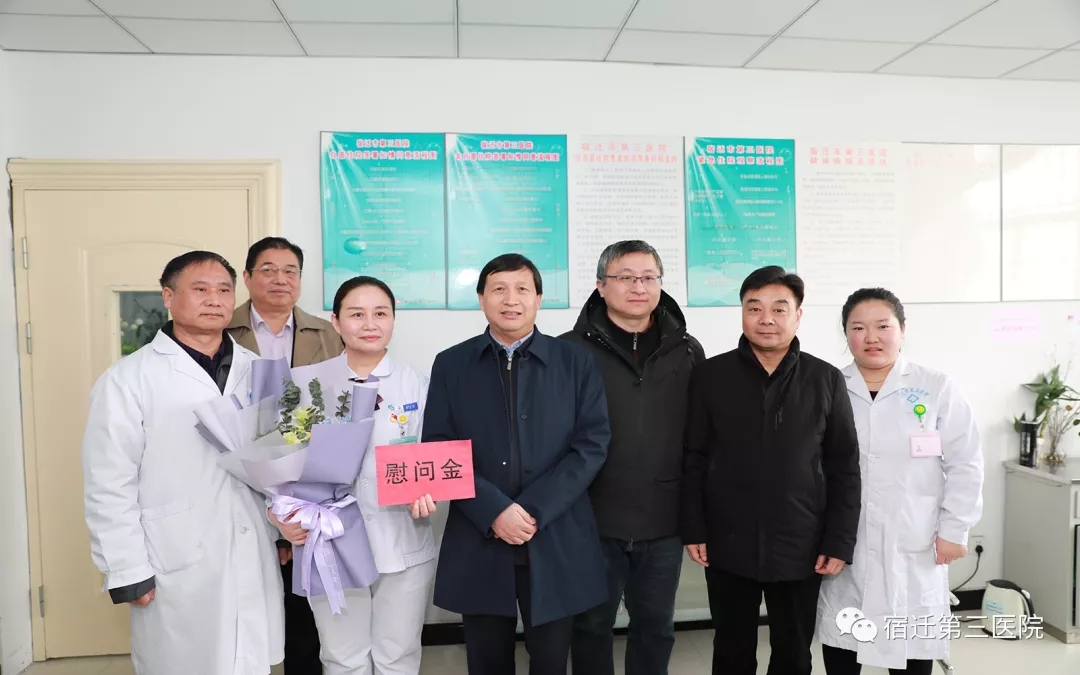 2月4日上午,在新春佳節(jié)來(lái)臨之際,在區(qū)衛(wèi)健局局長(zhǎng)王新新陪同下,宿遷市衛(wèi)生健康委員會(huì)主任、黨委書(shū)記劉仰剛,親切慰問(wèn)了我院仍然堅(jiān)守在工作崗位上的一線(xiàn)工作人員,對(duì)他們一年來(lái)的辛勤付出表示誠(chéng)摯的感謝和肯定,并向在醫(yī)院過(guò)年的患者及患者家屬們送去新春的祝福。