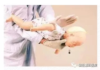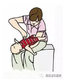 對于清醒的、1歲以下的嬰兒,不能使用腹部沖擊手法,而是采用雙指胸部沖擊(胸部正中,乳頭連線下緣)與掌跟背部拍擊相結(jié)合的方式。背部拍擊5次,再胸部按壓沖擊5次,交替進行,直到異物排出或者嬰兒失去反應(失去反應者須采用心肺復蘇法)。