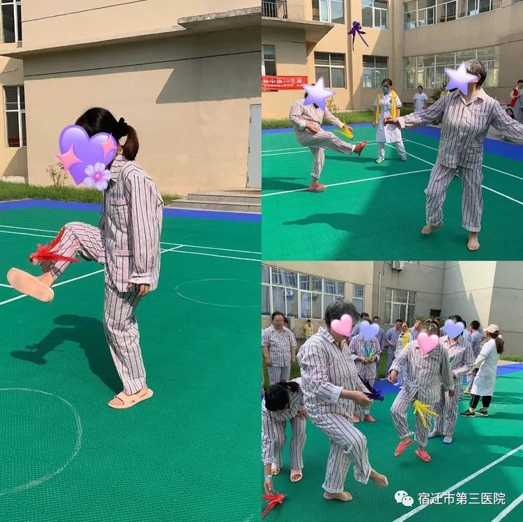 宿遷市第三醫(yī)院康復(fù)中心以“團結(jié)友愛創(chuàng)佳績,頑強拼搏不言棄”為活動主題,于9月3日、4日下午2:30在籃球場為住院康復(fù)期精神病患者舉行一場趣味運動會,讓這些長期遠離家人、遠離社會的精神疾病患者重新感受到來自社會的溫暖。