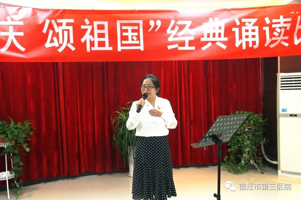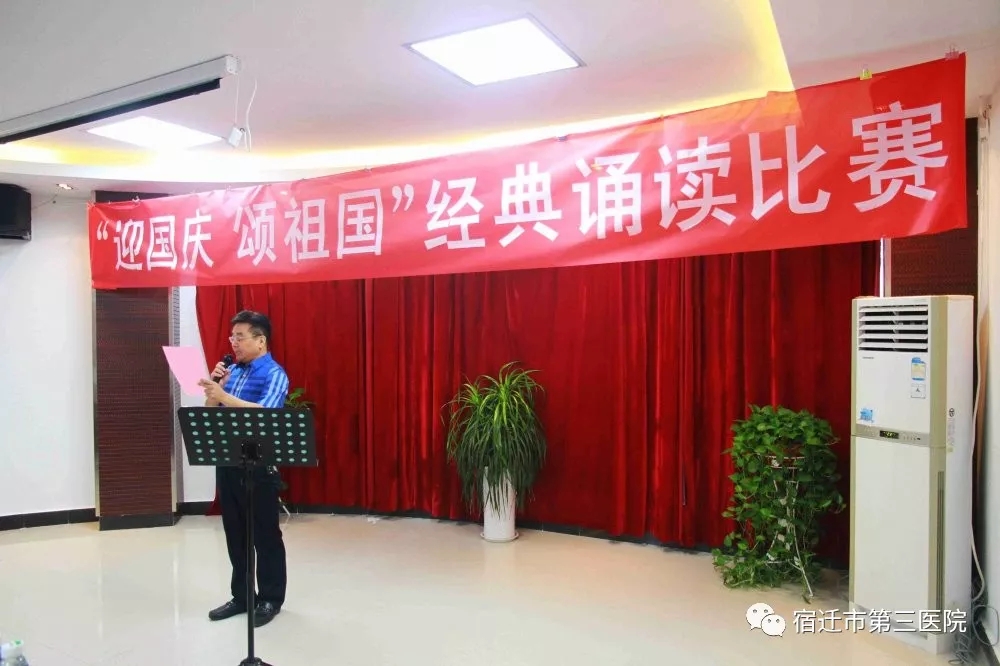 9月21日,鏗鏘洪亮的朗朗誦讀聲在宿遷市第三醫(yī)院會(huì)議室內(nèi)回響,為慶祝中華人民共和國成立70周年,營造濃厚氛圍,凝聚奮進(jìn)力量,宿豫區(qū)醫(yī)療保障局與我院在這里舉行“迎國慶 頌祖國”經(jīng)典誦讀比賽,通過誦讀表達(dá)對黨和國家濃濃的感情,向新中國成立70周年獻(xiàn)禮!